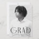 Faites de votre fête un moment inoubliable avec ces invitations simples mais élégantes à la remise des diplômes, avec la photo verticale du diplômé et "Grad" en gras noir, moderne art déco lettering. Personnalisez le front avec le nom du diplômé, l'école et l'année de diplôme pour une touche unique. L'arrière de l'invitation présente les détails de votre fête contre un arrière - plan géométrique noir et blanc chic, ajoutant une touche contemporaine au design. Parfaites pour les diplômés du secondaire et du collège, ces invitations offrent une façon sophistiquée et personnelle aux invités invitations à votre fête de remise des diplômes.