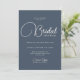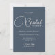 Imaginez une sensation de simplicité et d'élégance modernes avec cette simple invitation à la douche nuptiale en bleu marine avec un texte écru beige. Joli script de calligraphie jumelé à une simple face de type serif présente vos détails de l'événement avec le flair moderne. Le résultat est un look minimaliste et de bon goût, toujours dans le style. Personnalisez le texte avec les détails de votre événement dans le modèle de texte facile à utiliser.