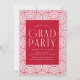 Invitations branchés de la fête de remise des diplômes avec les trois photos du diplômé situées à droite du design dans une mise en page verticale. Le " Grad " est présenté en blanc, de style art déco moderne, avec un arrière - plan rouge. Personnalisez l'invitation moderne de la fête de remise de diplômes en photo en ajoutant le nom du diplômé, l'année de remise de diplômes et le nom de l'école. La conception inverse pour afficher les détails de votre fête de graduation avec un arrière - plan tourbillon géométrique rouge et blanc. Parfait pour les bacheliers et collégiaux !