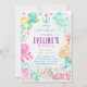 Invitez vos amis à une fête d'anniversaire sur le thème sous l'océan avec ces magnifiques invitations d'anniversaire aquarelle représentant une sirène avec des animaux marins, notamment des poissons, des tortues de mer, des pieuvres, des hippocampes et des méduses.