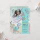 Les petites filles adorent les choses magiques. Cette invitation magique à la fête du 1er anniversaire de la sirène de mer et du dauphin ravira les clients avec un flair fantaisiste, avec sirène, dauphin, tortue et coquillages de mer, dans de jolies couleurs de rose, bleu vert et violet pâle. Un monde sous-marin de magie et de mystère.