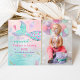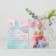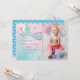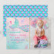 Cette adorable invitation présente une queue de sirène colorée avec des motifs de parties scintillant en faux or.