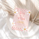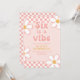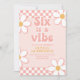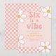 Six est une Vibration Fille Groovy Rétro inspiré invitation d'anniversaire 6ème avec des polices de style 70's et des marguerites et un motif à carreaux.