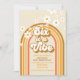 Six est une Vibe ! Retro inspiré 6ème anniversaire invitation avec des polices et des couleurs style années 70, arc-en-ciel, et marguerites dans les couleurs d'automne.