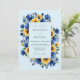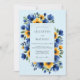 This design features a cheerful atmosphere for a seasonal outdoor ceremony. A serene sky blue backdrop is adorned with deep cobalt blue and sunny yellow watercolor anemones. Greenery accents provide a fresh feel to the lush painterly blooms. This artistic rendering of blossoms evokes joy and romance.