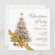 Invitation Société Gold Christmas Tree & Bow Holiday Party
