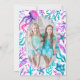 Cette invitation à la fête d'anniversaire conjointe de sirène d'aquarelle est idéale pour une fête d'anniversaire de soeurs ou de deux amis proches. Sur le devant de l'invitation se trouvent deux queues de sirènes d'aquarelle peintes à la main avec du corail, des coquillages et des créatures marines dans une palette de couleurs turquoise, rose et violet. Au verso de l'invitation se trouve une couronne photo de coraux et de créatures marines et vous pouvez remplacer la photo par une de vos propres. Cette invitation est idéale pour une fête d'anniversaire de fille à la plage, une fête de piscine ou juste une fête d'été sur le thème des sirènes. Vous pouvez customiser tous les champs de texte correspondant à votre événement. Voir l'ensemble de la collection de fêtes de correspondance.