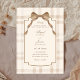 Invitation Soft beige brown bow tartan plaid wedding