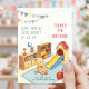 Célébrez le grand jour de votre petit avec cette adorable invitation d'anniversaire de salle de jeux douce! Parfait pour les tout-petits et les enfants d'âge préscolaire, ce design comprend des jouets en peluche, un toboggan intérieur coloré et un espace de jeux confortable. Idéal pour les fêtes à la maison, à la garderie ou dans les aires de jeux intérieures.
