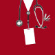Invitations créatifs de fin d'études en sciences infirmières avec gommages rouges et stéthoscope.