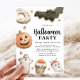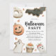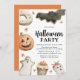 Des invitations à la fête d'Halloween agrémentées de détails de votre fête, entourées d'un beigne d'aquarelle, de biscuits, de cupcake, d'une fraise couverte de chocolat et de maïs-bonbons. L'invitation à la fête d'Halloween est idéale pour les fêtes d'Halloween pour enfants !