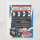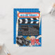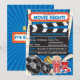 Avec des bobines de films rétro et du film, du pop-corn, des sodas, des billets et des lunettes 3D. Cette invitation est disponible en différentes couleurs de fond, notamment rose, violet et rouge.