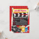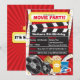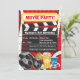 Avec des bobines de films rétro et du film et du pop-corn, du soda, des billets et des lunettes 3D. Cette invitation est disponible en différentes couleurs de fond, y compris rose, violet et bleu.