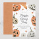 Organisez un après-midi ou une soirée de plaisir de sculpture citrouille avec cette invitation de fête d'Halloween pour les enfants mignons et charmants, avec des illustrations d'aquarelle douce des citrouilles, jack-o-lanterns, et maïs bonbon.