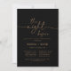 Cette soirée classique en or noir avant le dîner de répétition est parfaite pour un événement moderne. Le design sobre et élégant présente une typographie de script classique et sophistiquée en or.