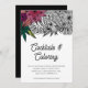 Organisez une soirée de coloriage pour adultes accompagné d'un verre de vin ? Invitez vos amis à partager leur côté créatif avec ces magnifiques invitations de soirée coloriage, dotées d'une bordure supérieure de fleurs tropicales luxuriantes en noir et blanc, partiellement colorées avec des teintes vives et vibrantes. "Cocktails et coloriage" et les détails de votre événement apparaissent en noir net. Un choix parfait pour un thème de soirée unique !