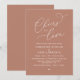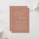 Annoncez votre bonheur toujours après dans le style avec notre magnifique design moderne teracotta marron thème (Cheers to love) couples douche carte d'invitation de célébration. Avec son design sophistiqué et ludique, cette invitation vous donnera le ton pour un événement inoubliable. La carte d'invitation présente un design de script romantique minimaliste moderne, ajoutant une touche d'élégance intemporelle à votre célébration. Conçu par TeeshaDerrick