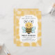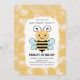 Une jolie invitation à la fête d'anniversaire neutre présente une abeille au miel sur un arrière - plan peint à la main et abstrait, peint en nid d'abeille, invitant les clients à faire du buzz pour une fête "Bee-Day". La couleur jaune est parfaite pour l'anniversaire d'une fille ou d'un garçon. Oeuvre originale KL Stock.