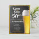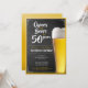 Soirée de fête d'anniversaire simple et propre pendant 50 ans sur plateau noir tendance avec cadre or et pinte en verre avec bière dorée. Vous pouvez facilement changer les années de célébration à 30, 40, 60 ou autre