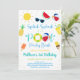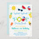 Cette invitation à l'anniversaire présente d'adorables illustrations d'été colorées aux accents de fausse feuille d'or.