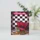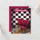 Invitation Soirée Disco Club Dames ou Enterrement de Vie de Jeune Fille. Carreaux Noirs et Blancs avec enseigne rose fluo et Chaise Longue Rose Rouge avec Tigre. Peut être utilisé pour toute Célébration ou Événement. Personnalisez avec vos propres détails.