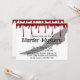 Cette invitation à une soirée de dîner d'Halloween mystère de meurtre effrayant présente un thème de scène de crime sinistre. L'ombre d'une main tenant un couteau est représentée au-dessus des informations sur l'événement. Du sang coule sur la partie supérieure.