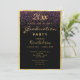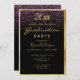 Une carte d'invitation féminine et chic pour une soirée de remise de diplômes 20xx. Glamour avec arrière - plan noir élégant et moderne et pluie de confettis violet et rose. Avec un cadre en faux or. Modèle pour le nom et les détails de la fête. Le texte Graduation et le nom sont écrits avec un script de style manuel moderne. Lettres d'or. Retour : arrière - plan noir avec pluie de confettis rose et violet.