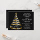 Cette élégante et chic invitation de fêtes de fin d'année comprend un arbre de Noël en or et en ruban noir avec un haut-parleur étoilé. Le texte combine écriture manuscrite et polices sans serif modernes pour un look élégant et sophistiqué. La neige tombante, les flocons de neige et les étincelles donnent une touche festive et magique.