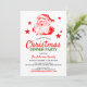 Invitation contemporaine de fête de Noël avec un arrière - plan blanc classique, un claus santa rouge et blanc, étoiles pour ajouter cette touche magique et un modèle de soirée xmas moderne qui est facile à customiser.
