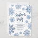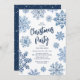 Faites de cette saison de vacances encore plus spéciale avec notre élégante invitation de fête de Noël en flocon de toile bleue. Notre design se targue d'une toile blanche classique ornée de beaux flocons de neige bleu marine et bleu clair, encerclant un modèle personnalisable parfait pour votre fête de Noël branchée.