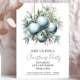 Invités Invitations à fêter dans le style saisonnier avec cette invitation sophistiquée à la fête de Noël, avec des baubles bleus gelés délicats, des feuilles saints argentés et des baies d'hiver douces. Le script intemporel et la palette sereine le rendent parfait pour d'élégants rassemblements de vacances, soirées d'hiver, ou fêtes de bureau. Customisez facilement avec les détails de votre événement et laissez les célébrations commencer!