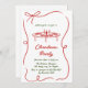 Célébrez la saison en beauté avec cette invitation classique à la fête de Noël avec une typographie rouge et verte festive et une charmante illustration du buffet. Un cadre en ruban rouge fantaisie apporte une touche de gaieté tout en laissant beaucoup d'espace pour vos détails d'événement personnalisés. Parfait pour les fêtes de fin d'année, les fêtes de bureau ou les fêtes de famille, cette invitation donne le ton d'une soirée chaleureuse et accueillante.