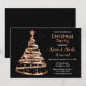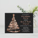 Invitation Soirée de Noël rose d'or et d'arbre à ruban noir