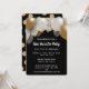 Elegant Black & Gold New Years Eve Party Invitation comprend des ballons de fête, des confettis d'or à l'arrière de la carte et du modèle de message en arrière - plan noir.Un design parfait pour envoyer des invitations de nouvelle année à vos amis et proches.Cliquez sur le bouton de personnalisation pour le customiser avec votre propre texte.