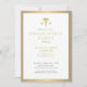 RN caduceus simple élégante typographie infirmière grad party invitation avec un cadre minimal simple en faux or et blanc. Facile à personnaliser avec vos détails de fête diplômés et photo sur les deux côtés.