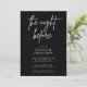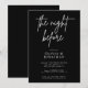 Créez une première impression mémorable pour votre célébration pré-mariage avec l'Elégante Soirée de répétition de calligraphie avant l'invitation, un design raffiné et romantique fait pour les couples modernes qui apprécient les détails intemporels. Doté d'une calligraphie sophistiquée et d'une disposition propre et facile à lire, cette invitation annonce magnifiquement votre dîner de répétition avec grâce et charme. Son écriture élégante ajoute une touche personnelle et chaleureuse, tandis que le style minimaliste garde l'accent sur votre soirée spéciale. Parfait pour les thèmes traditionnels, formels ou contemporains, cette invitation donne le ton d'une chaleureuse réunion de famille et d'amis la veille de votre grande journée, ce qui en fait une partie chère de votre voyage mariage.