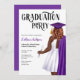 Invitation de la fête de la remise des diplômes de l'école dentaire. Invitation pour les grandes fêtes célébrant les femmes qui viennent d'obtenir leur diplôme de l'école dentaire. Célébrez le nouveau DDS dans votre vie avec cette invitation à la fête de l'école de dentisterie! Portant le portrait d'une femme à peau foncée incurvée portant une robe blanche, une robe de graduation violette drapée sur son épaule et une casquette de graduation violette assortie. Elle tient du matériel dentaire dans la main. L'invitation parfaite pour votre fille, nièce, mère, tante, cousin ou ami qui vient d'être diplômé de l'école dentaire.