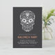 Une éffrayante invitation à la fête d'Halloween adulte chic avec une illustration complexe du crâne de sucre calavera. Personnalisez avec les détails de votre fête en dessous.