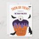Trick ou régalez la fête ! Célébrez votre Halloween éffrayant et amis invitations et famille avec ce cupcake à oeil éffrayant dessiné à la main en orange, violet et vert avec chauves-souris noires. L'arrière - plan de couleur est entièrement modifiable, vous pouvez déplacer les chauves-souris autour.