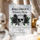 Invitation Soirée d'Halloween Roses et crâne gothique noir