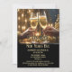 Invitation à la fête du réveillon du Nouvel An noir et or chic festif avec un toast au vin mousseux. Au verso se trouve un modèle de code QR. Si vous n'en avez pas besoin, vous pouvez facilement supprimer ces options. Bonjour à un Nouvel An !