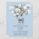 Une fête du Nouvel An moderne unique, avec des ballons d'argent à effet métallique aquarelle attachés avec un ruban. Un design simple et élégant pour la fête du Nouvel An qui peut être customisé pour n'importe quelle année.
