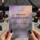 Transformez votre fête d'Halloween en fête d'Halloween spooktaculaire avec cette invitation unique. Un arrière - plan de style aquarelle s'évanouit d'un violet sinistre à une orange éclatante, créant une atmosphère hantée. La police déplaisante et la silhouette hantée maison et chauves-souris ajoutent une touche éffrayante, assurant à vos invités d'être heureux d'y assister. C’est le moyen idéal pour les amis et la famille invitations de passer un bon moment ! Créé par Simply Farmhouse Press.