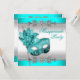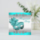 Elégante invitation à la mascarade en argent turquoise et bleu turquoise. Cette belle invitation à la mascarade bleu turquoise est facilement customisée pour votre fête ou événement, en ajoutant vos détails à l'avant et à l'arrière en ajoutant vos détails d'événement, le style de police, la taille et la couleur de police et le libellé. Veuillez noter que tous les modèles d'invitation que vous trouverez sur Zazzle sont des graphiques imprimés sur papier plat stock sans bijoux, arcs, surélevés, gaufrés, ou pièces ou pièces ajoutées.