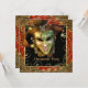 Carton d'invitation élégant orange, noir et or pour une soirée masquée avec un masque de Mardi Gras vénitien doré avec des clochettes sur un fond à volutes dorées et léopard orange, noir et or. Cette invitation de bal masqué or et rouge convient parfaitement pour une soirée masquée d'Halloween, une soirée masquée pour un anniversaire de 16 ans, une soirée masquée de Quinceanera, un bal masqué, une soirée Mardi Gras, une soirée Carnaval, un bal de promo masqué, ou toute autre soirée à thème masqué or et rouge et est facilement personnalisable pour votre événement en cliquant simplement sur le bouton orange "Personnalisez-le !" pour commencer à ajouter les détails de votre événement, le style de police, la taille et la couleur de la police, ainsi que le libellé. Veuillez noter que toutes les conceptions de cartes et d'invit