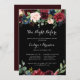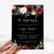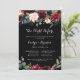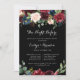 Cette nuit noire rustique avant le dîner de répétition est parfaite pour une soirée classique en famille et entre amis avant le dîner du mariage. Le design est composé de fleurs bordeaux, rouges, navy, bleues et rousses rayonnantes et gracieuses peintes à la main dans un arrière - plan noir, inspirant beauté naturelle.