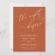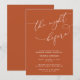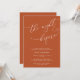 Préparez-vous à une soirée inoubliable avec notre Elegant Burnt Orange Nuit avant le Dîner de répétition Invitation. Réalisée avec raffinement et chaleur, cette invitation est la meilleure façon de réunir votre famille et vos amis les plus proches pour un prélude à votre journée spéciale. Avec sa riche teinte orange brûlée et son design intemporel, notre invitation exhale élégance et charme. Que vous planifiez un rassemblement intime ou une aventure somptueuse, cette invitation donne le ton d'une nuit remplie d'amour, de rires et de souvenirs chéris. Entièrement personnalisable pour refléter votre style et votre vision uniques, notre Elegant Burnt Orange Night Before Rehearsal Dinner Invitation offre des options pour les styles de police, la mise en page et la personnalisation supplémentaire. C'est la façon idéale de s'assurer que chaque détail de votre dîner de répétition reflète votre goût et votre personnalité personnelles. Faites une déclaration avec vos invitations à dîner de répétition et préparez la scène pour une soirée mémorable avec vos proches. Commandez dès aujourd'hui votre Elegant Burnt Orange Nuit avant le Dîner de répétition Invitation et laissez la célébration commencer.