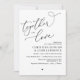 Annoncez votre bonheur toujours après dans le style avec notre design moderne et romantique noir blanc thème design (Ensemble dans l'amour) couples douche carte d'invitation de célébration. Avec son design sophistiqué et ludique, cette invitation vous donnera le ton pour un événement inoubliable. La carte d'invitation présente un design de script romantique minimaliste moderne, ajoutant une touche d'élégance intemporelle à votre célébration. Conçu par TeeshaDerrick