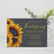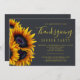Classy simple élégant Thanksgiving / Friendsgiving dîner party / fête à fleurs avec un beau bouquet de tournesol orange jaune et un script de typographie or chic sur un arrière - plan sombre.