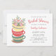 Invitation votre fille amis à une fête de thé de douche nuptiale à travers cette invitation mignonne et chic avec une pile de belle tasse de thé et un bouquet de fleurs sur le dessus. Personnalisez-le avec vos propres détails.